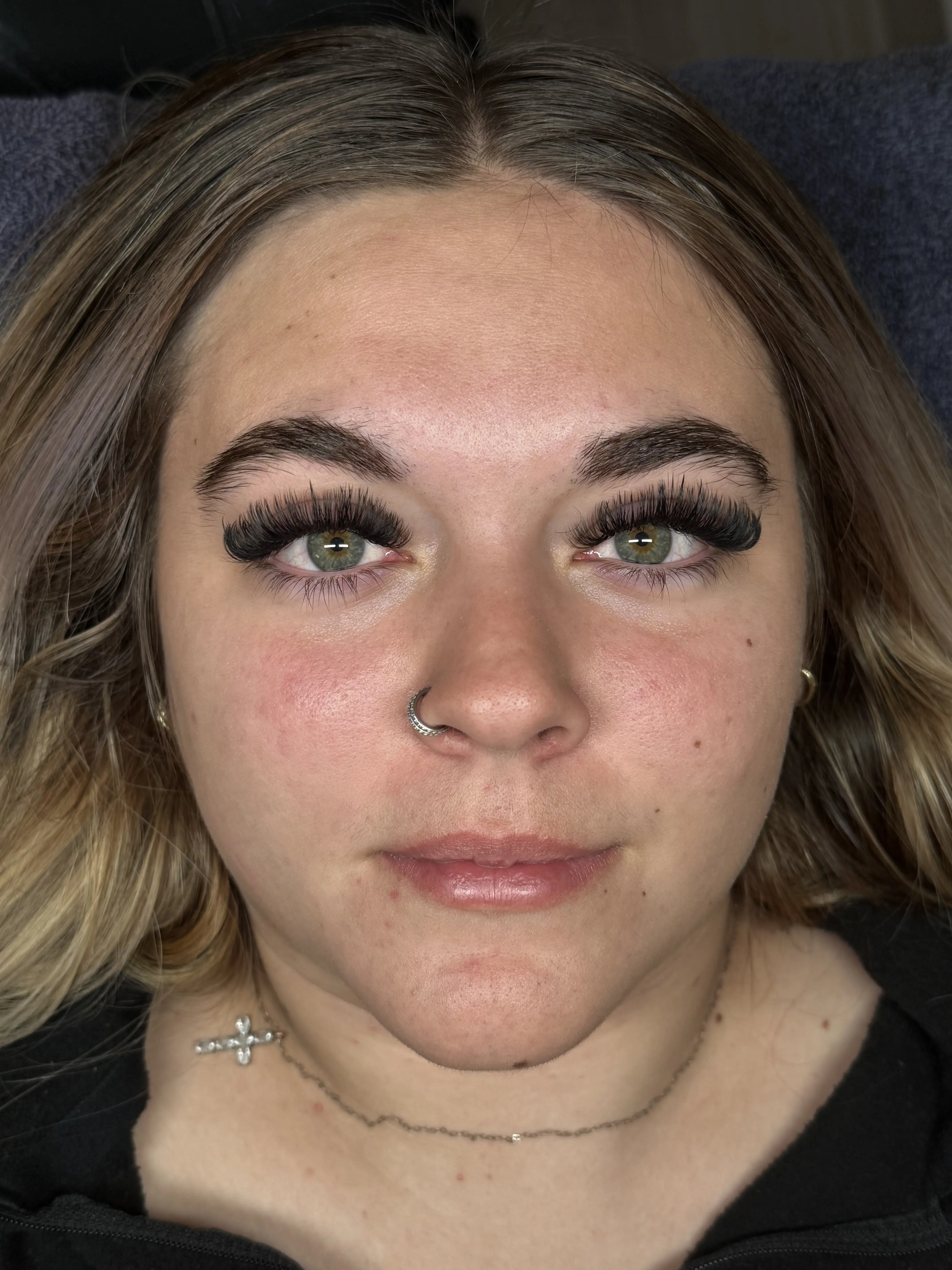 This set creates a lighter volume look for your lash line. Not as dense and dark as a full volume, but adds more than just length to your natural lashes. All lash sets are tailored to your eye shape and your desired style.